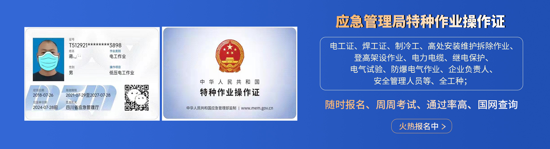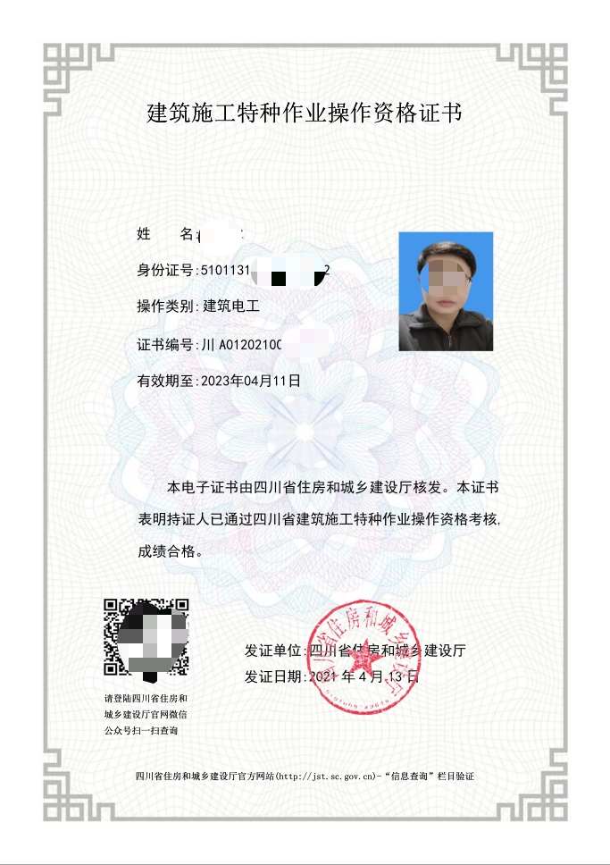 電工證,焊工證,登高架設證,高處安裝維護拆除證,電力電纜證,繼電保護證,電氣實驗證,防爆電器作業(yè)證,制冷工證,主要負責人證,安全管理人員證